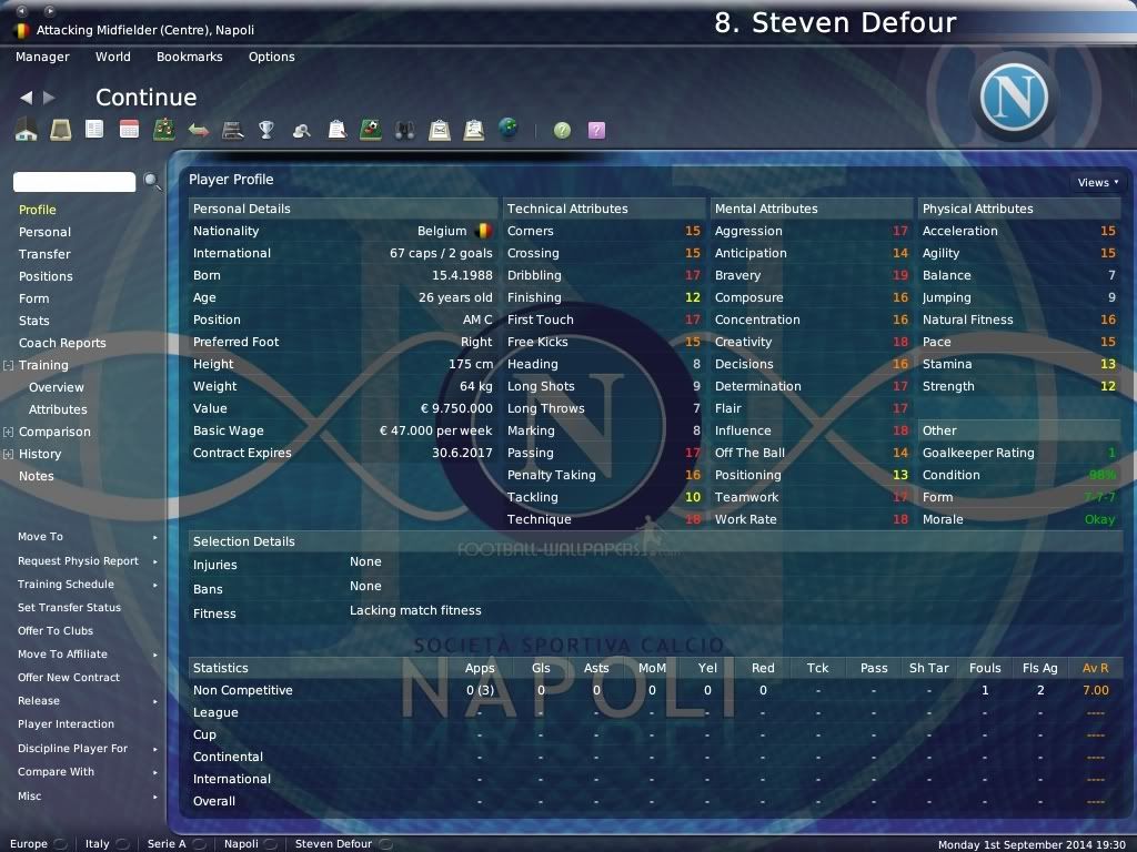 Steven Defour â€" jos jedno pojacanje za sredinu terena. Njegova zadaca ce bit striktni MC, sa povremenin AMC zadacama. Konkurencija je velika, ali virujen da ce kroz ovu sezonu se izkristalizirat ko ce dogodine otic iz kluba sa te pozicije, jer Antonio, Kuzmanovic, Veloso i sad Defour je ipak puno igraca za jednu poziciju, ali vidit cemo, uvik postoje posudbe...