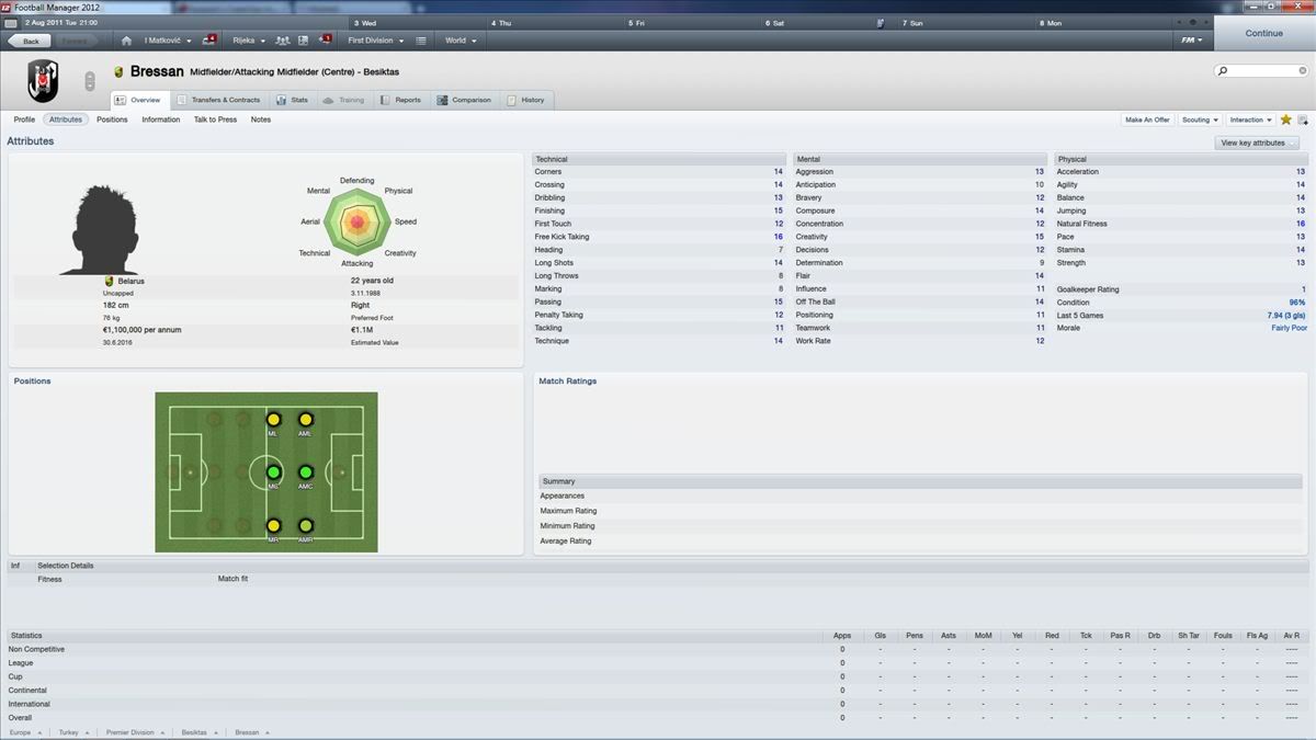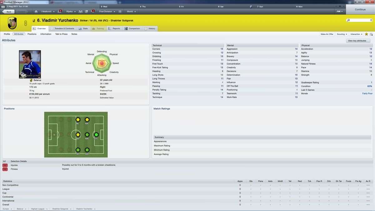Ćorić bi trebao bit unutra al nije. Do nastupa za A ekipu je deadline već bio gotov a nać podatke o nekom junioru je ako ne pratiš klub Sizifov posao. Cibalia nema researchera, to je također već napomenuto. Kolko znam na forumu je bilo objavljeno da se traže researcheri. Pošto si vidim fan i Cibalije i FM-a, mogao si komotno bit researcher. Pa se ne bi imao razloga čudit zašto je nešto napravljeno kako je.