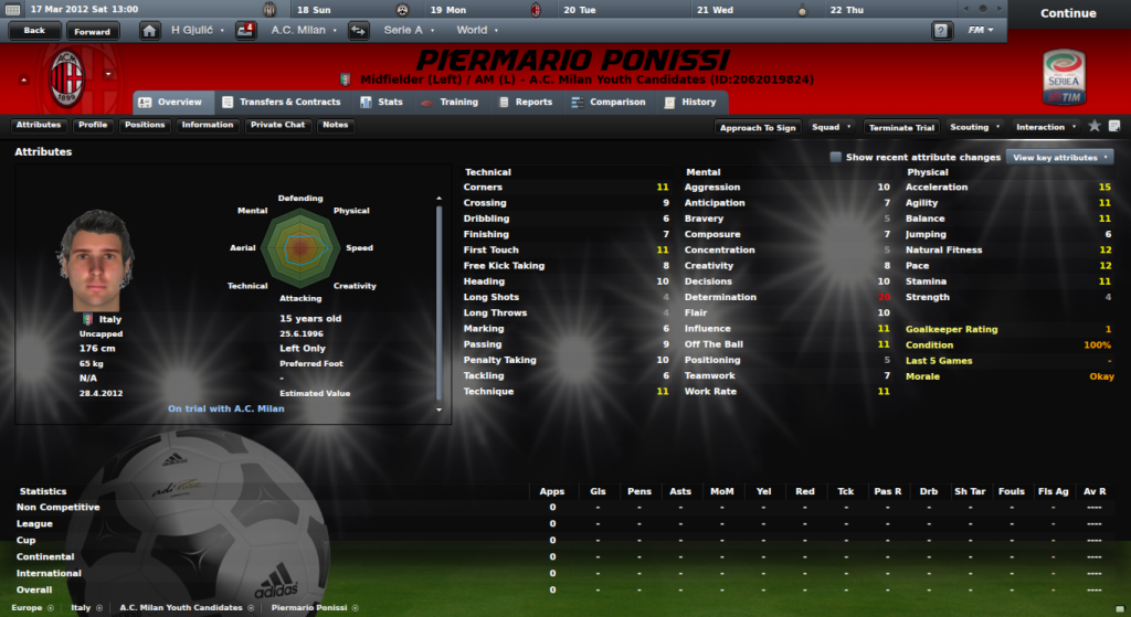 Determination (10)  bi ga mogao zaÅ¡tekati, ali opet work rate (18), svaÅ¡ta je moguće.