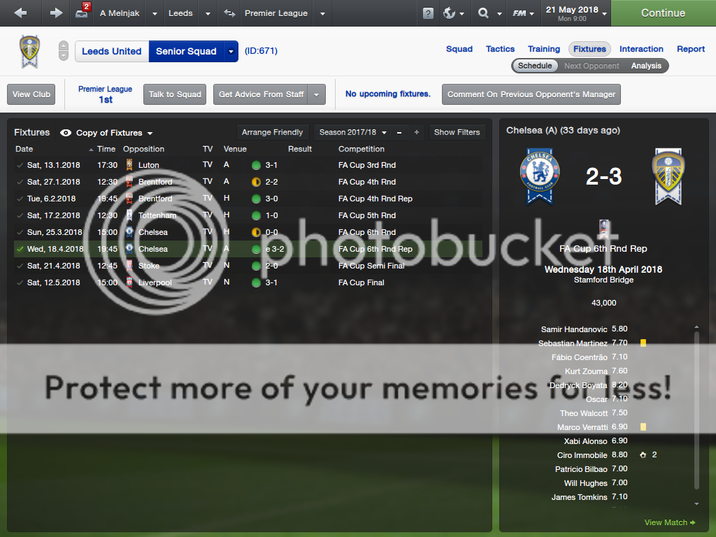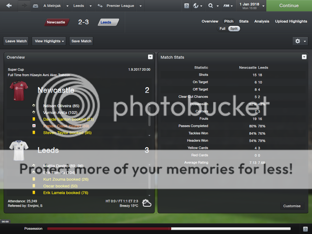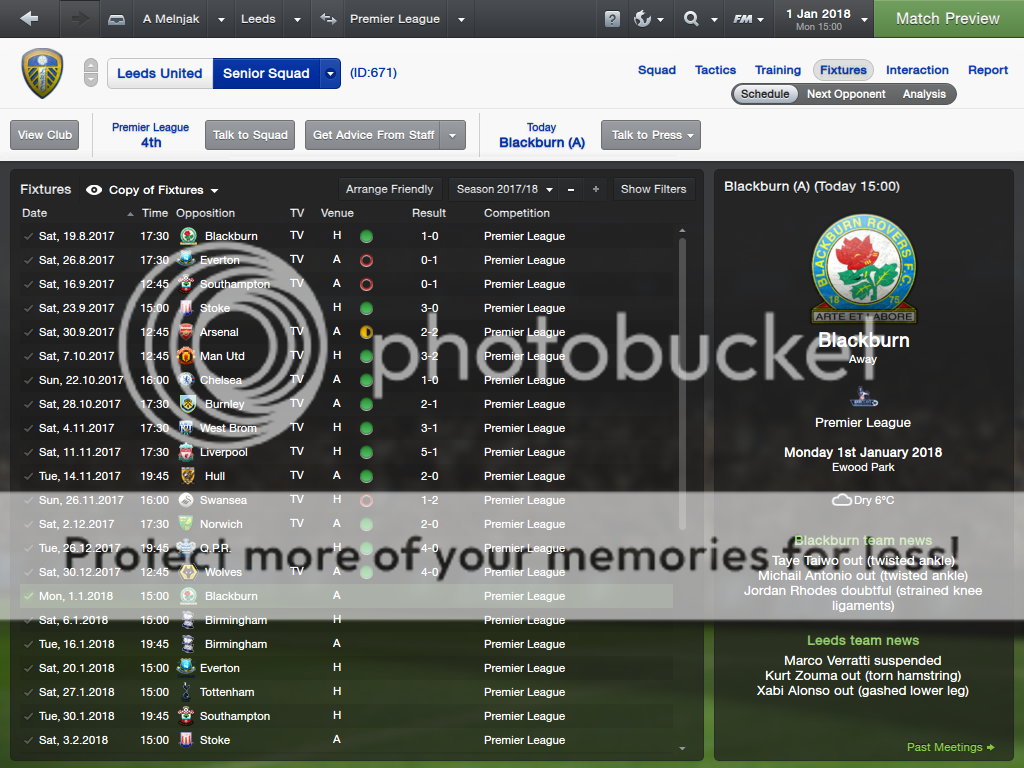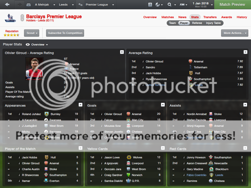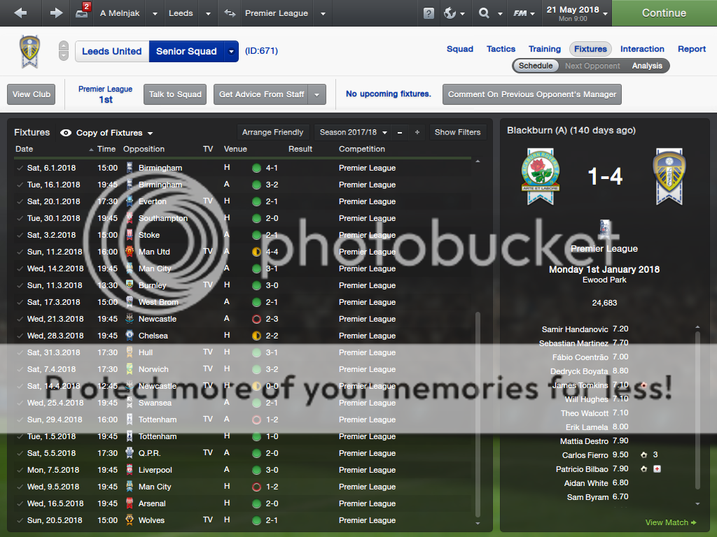 Neću duljiti jer mi je prst u longeti pa jedva piÅ¡em. Evo nakon dosta vremena upalio sam ponovno sejv s omiljenim Leedsom i zavrÅ¡io ostatak sezone. Bila je ovo moja 6. sezona u Engleskoj, a 5. u najelitnijem druÅ¡tvu. Za sezonu mogu reći da je uspjeÅ¡na. Neki igraÄi su se dokazali i ozbiljno nametnuli, dok neki jednostavno ne mogu pratiti ritam velikog Engleskog diva. Drugi dio polusezone, takoÄ‘er sam koristio za uigravanje dva nova sustava. Koja su to, neću Vam joÅ¡ otkrivati, ali siguran sam da će se vidjeti na rezultatima u sljedećoj sezoni! MeÄ‘utim krenimo s ostvarenim rezultatima ove sezone.