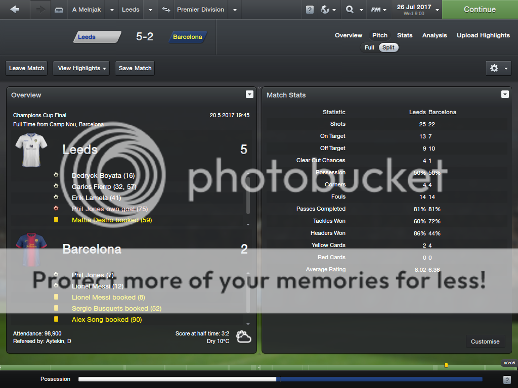 To bi bilo, viÅ¡e-manje to. Ostao sam Vam dužan joÅ¡ puno SS-ova, ali su moje radnje ograniÄene zbog longete na prstu, pa jedva piÅ¡em i klikam. Sljedeći report će biti bolji! Da kažem par rijeÄi i o sezoni, osvojilo se sve Å¡to se moglo osvojiti. Liga prvaka nam je izmakla, ali u 6. godina sam s Leedsom osvojio sve dostupne trofeje. MeÄ‘utim tu moja priÄa u Leedsu neće stati. Već sljedeću sezonu idemo ponovno ruÅ¡iti rekorde. Dva zvuÄna pojaÄanja su potpisala, netko će otići, a netko doći, no viÅ¡e o tome u sljedećem reportu. ZavrÅ¡ti ću s reÄenicom, Leeds najjaÄi ikada igdi!