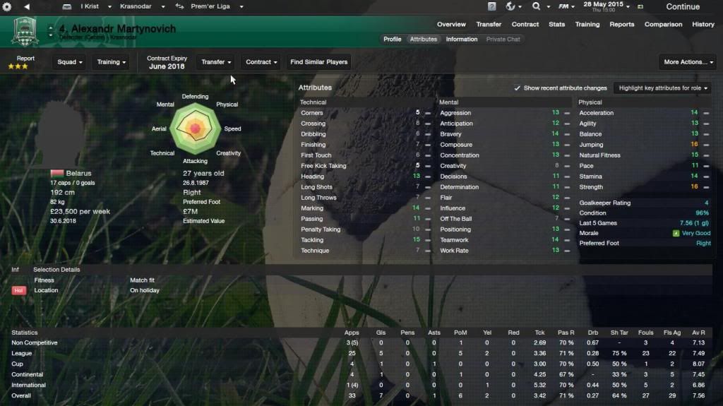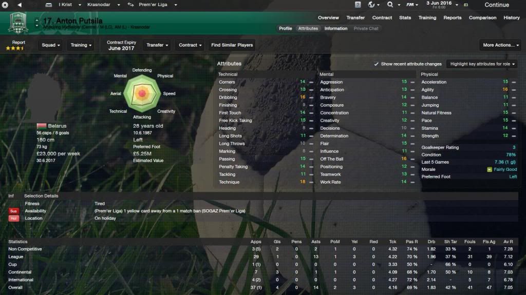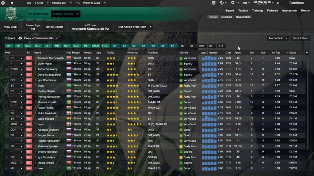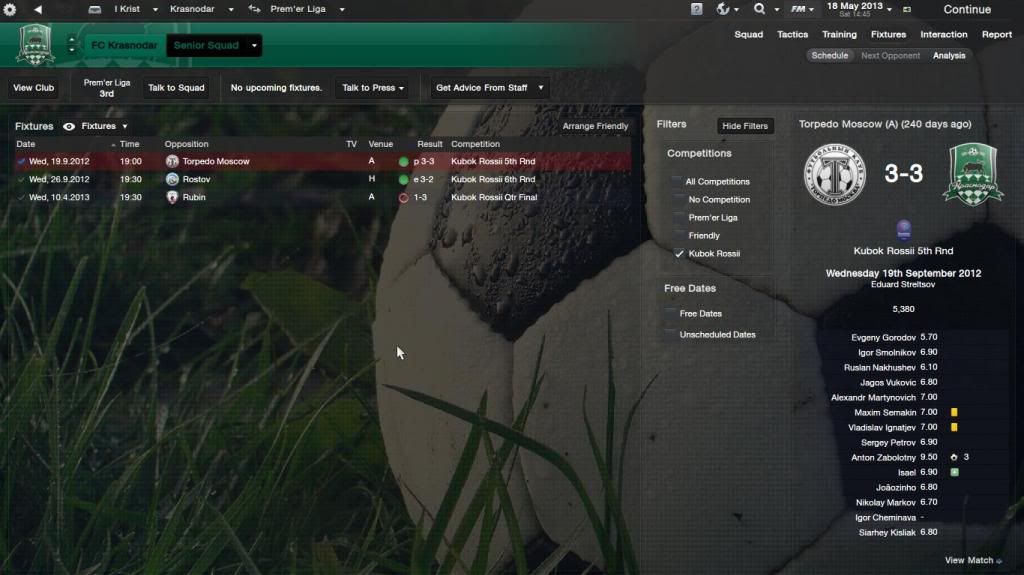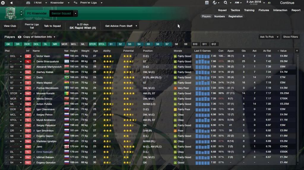Vesela krasnodarska skvadra je prakticki ista ka i zadnje 2 sezone, tako da se tu nema sta puno rec. Doduse mora se napomenut da iman najboljeg strijelca lige, 1. i 2. asistenta lige i najboljeg igraca lige po average ratingu odnosno najjaceg stopera lige, takodjer 3 igraca su u najboljih 11 lige