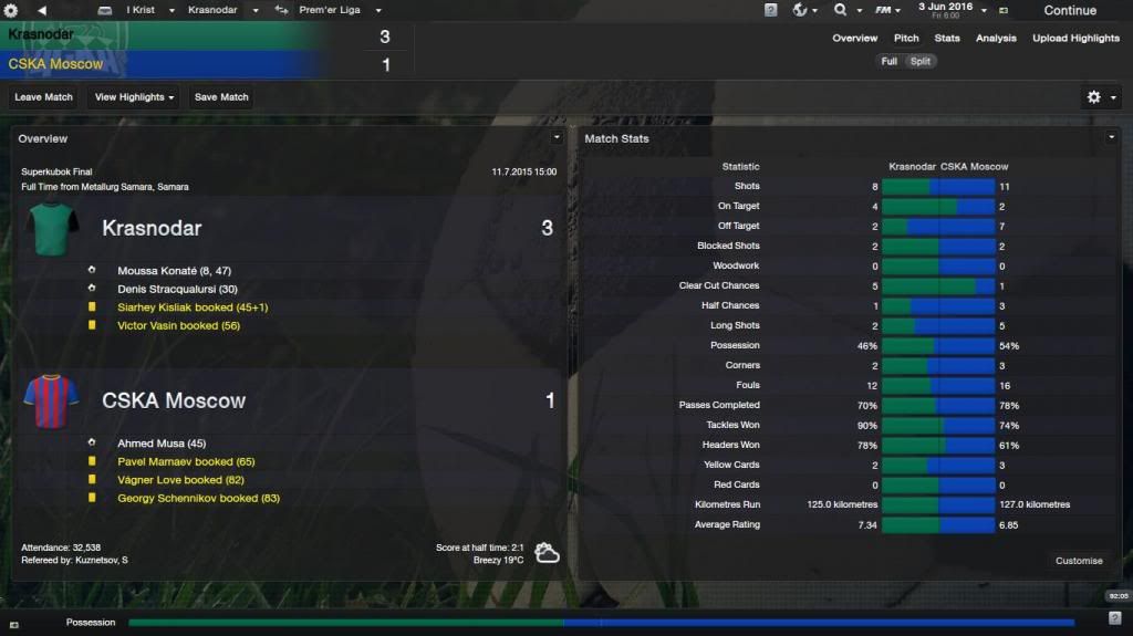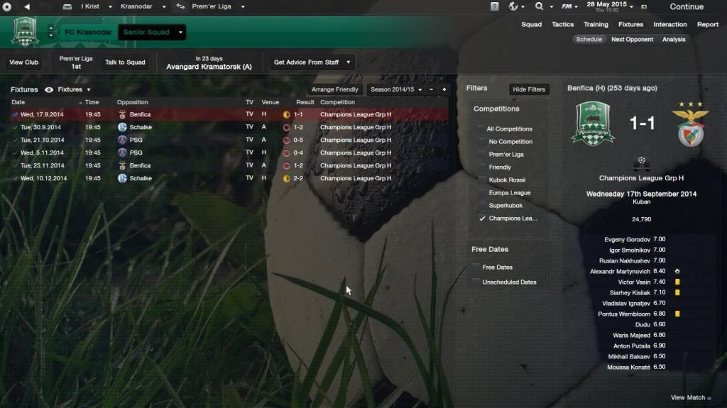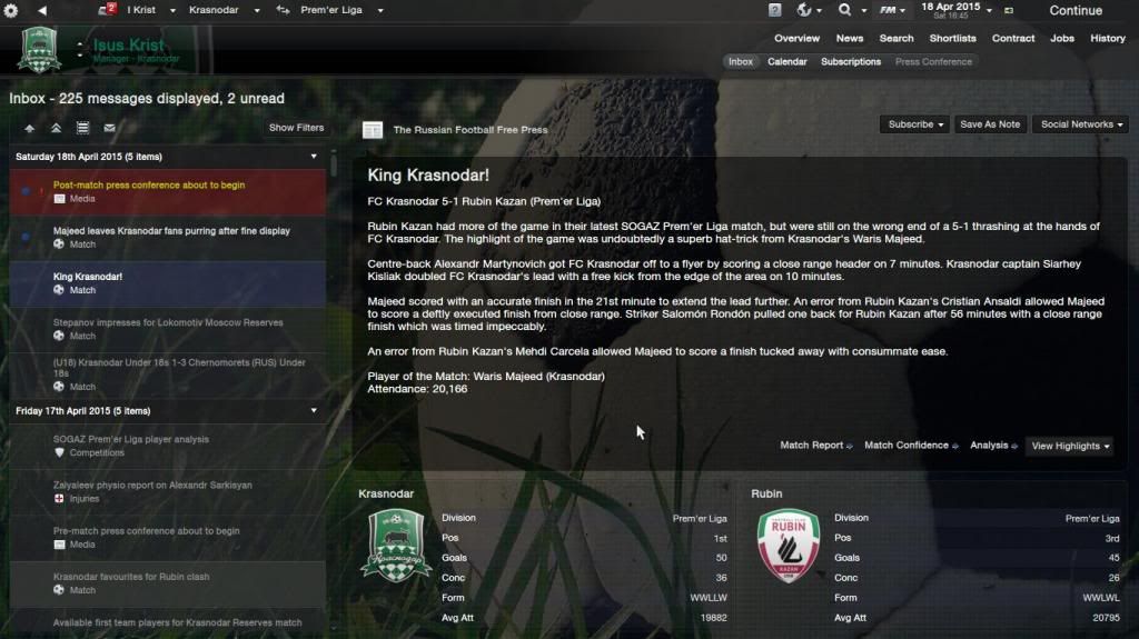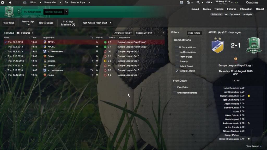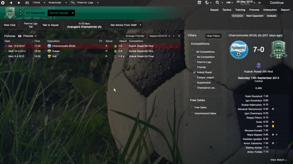 Zadnju utakmicu prije stanke me Anzhi ubija 6-1 i tako su zadnjih u zadnjih 10 kola usli ka prvi u ligi sa bodon prednosti isprid mene, ali na kraju se Veliki Krasnodar veselija