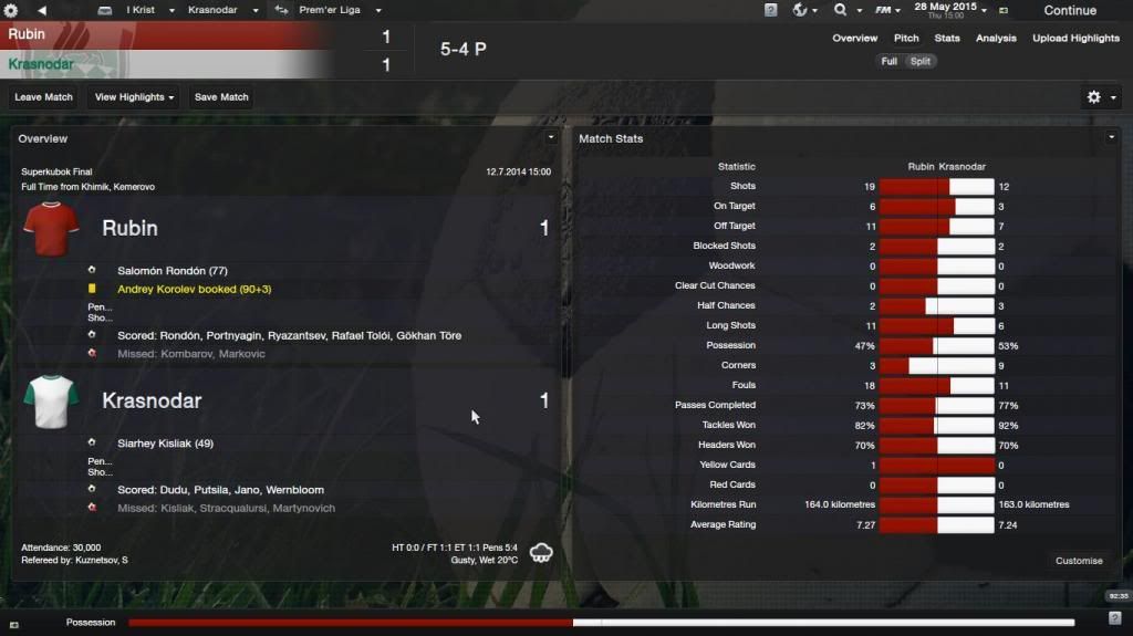 U superkupu me na penale dotuka Rubin. Statistika bi rekla drugacije, ali dominira san prakitcki cilu utakmicu