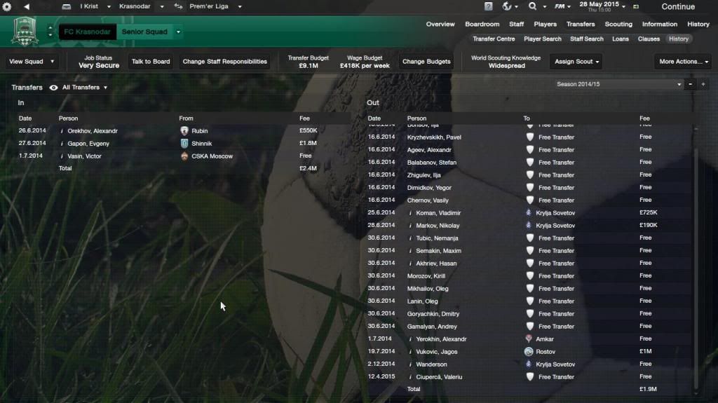 Gazda opet rjesava bogati jednogodisnji sponzorski ugovor koji dize balans na pristojan plus i skupa s njime transfer budget koji doduse nisan puno trosia.