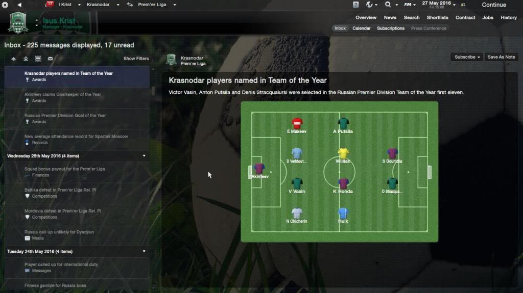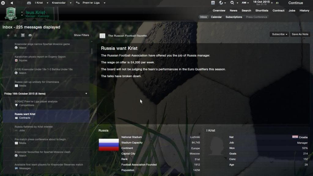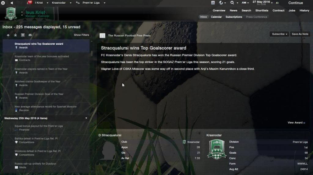 Najjaca sezona ikad je iza pro managera Isusa Krista na klupi Krasnodara iz Krasnodara, tako da cemo skratit pricu i krenut na stvar