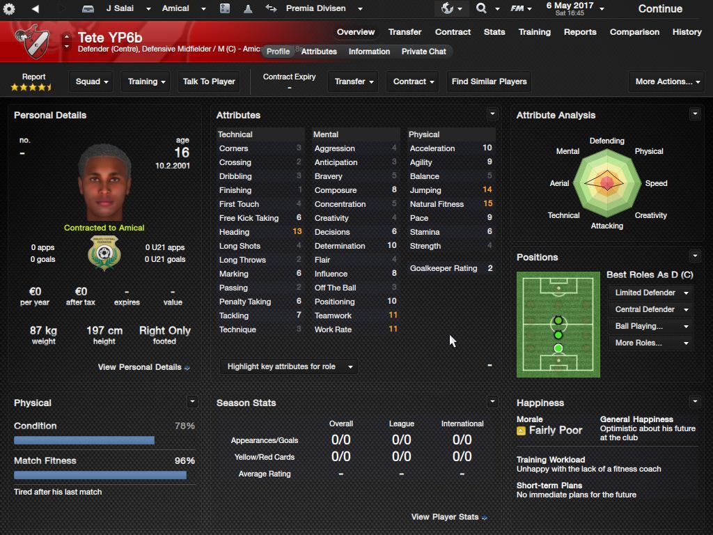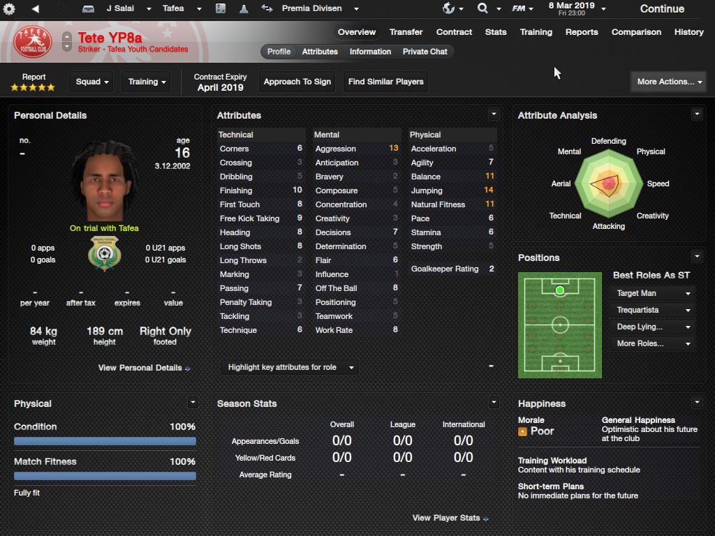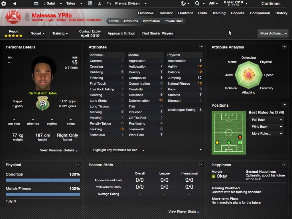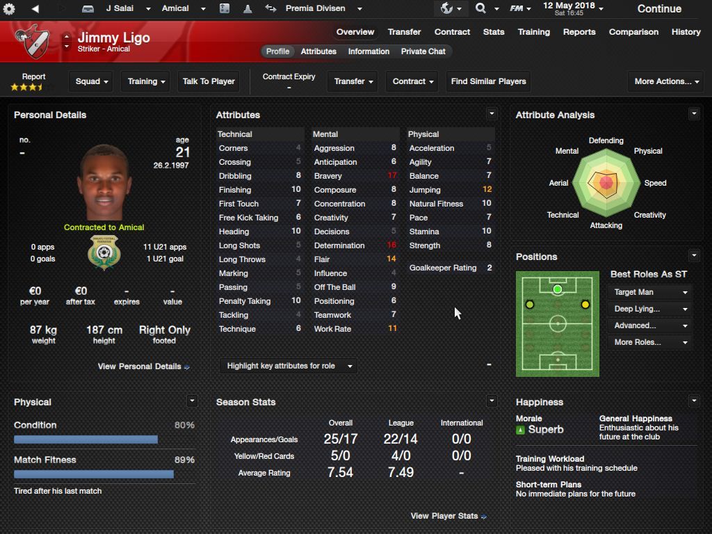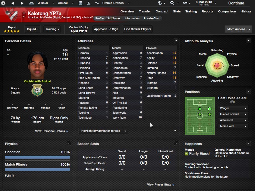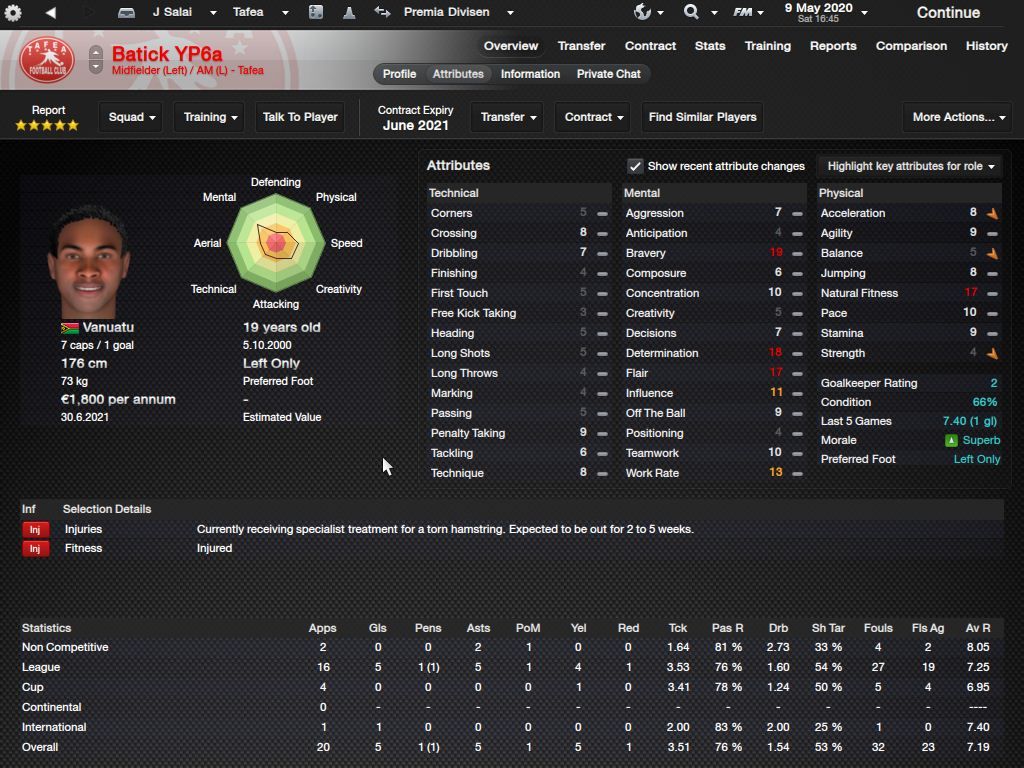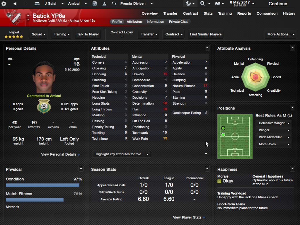 Richard Batick - evo ss za Doktora. To je Batick, majstor koji sa 16 godina ode "trbuhom za kruhom" u tada joÅ¡ jednako siromaÅ¡nu Tafeu. ProÅ¡le sezone 24 utakmice, 5 golova i 7 asistencija, ove sezone 23/6/4, sve na lijevom krilu. Za 18-godiÅ¡njaka jako impresivne brojke. KljuÄni mentalni atributi i natural fitness i dalje su na maksimumu.