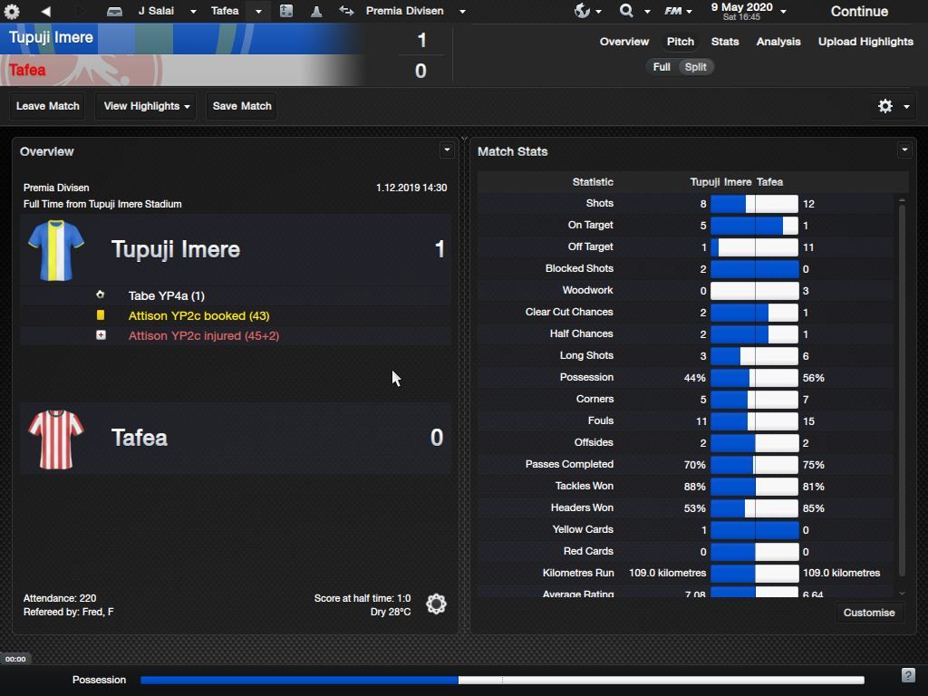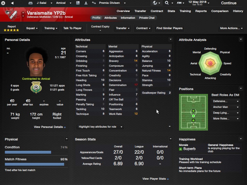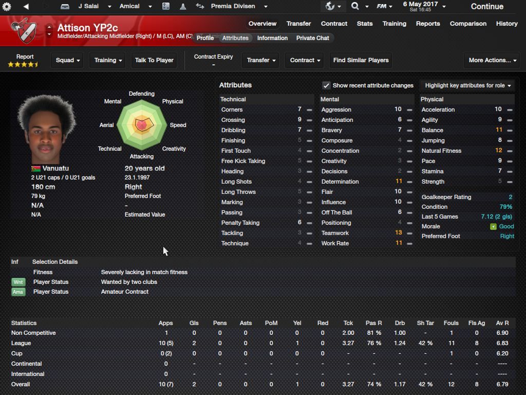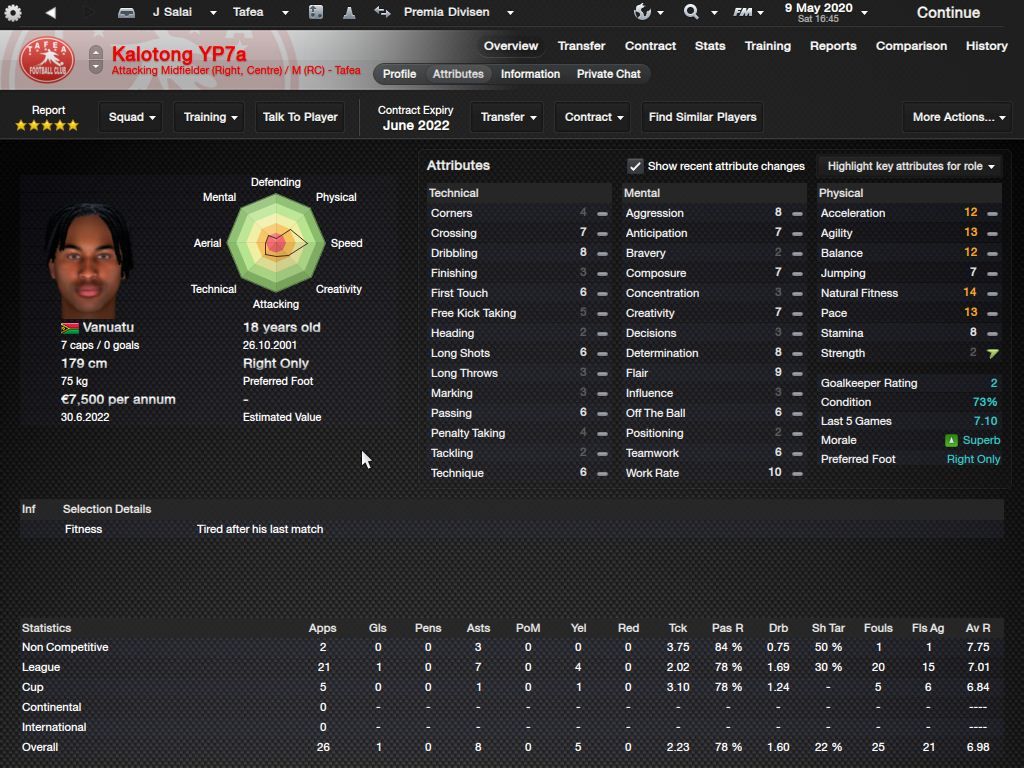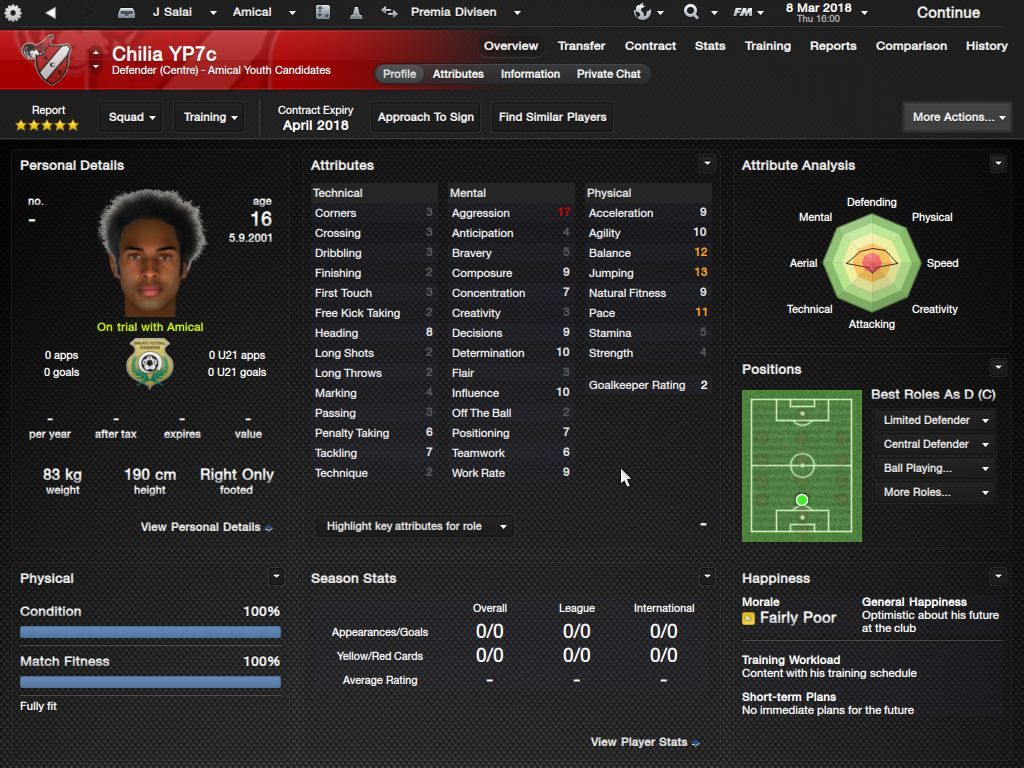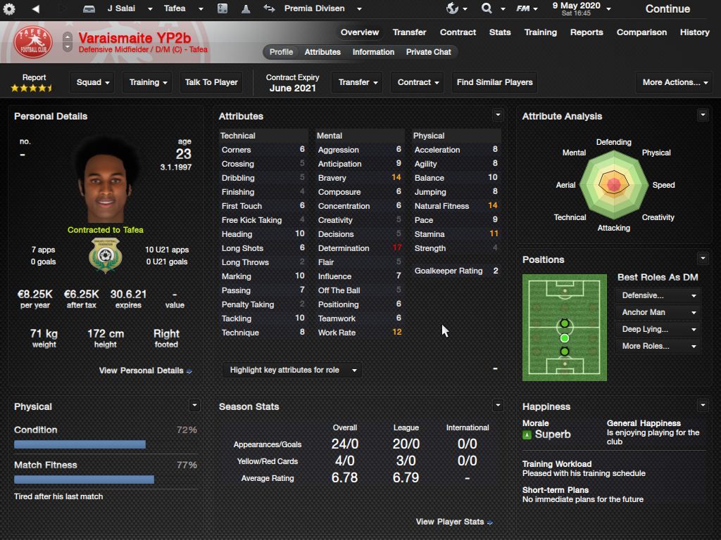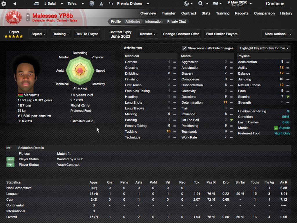 Richard Batick - evo ss za Doktora. To je Batick, majstor koji sa 16 godina ode "trbuhom za kruhom" u tada joÅ¡ jednako siromaÅ¡nu Tafeu. ProÅ¡le sezone 24 utakmice, 5 golova i 7 asistencija, ove sezone 23/6/4, sve na lijevom krilu. Za 18-godiÅ¡njaka jako impresivne brojke. KljuÄni mentalni atributi i natural fitness i dalje su na maksimumu.