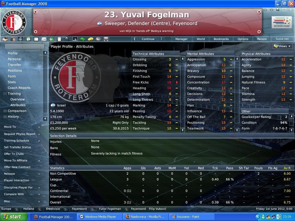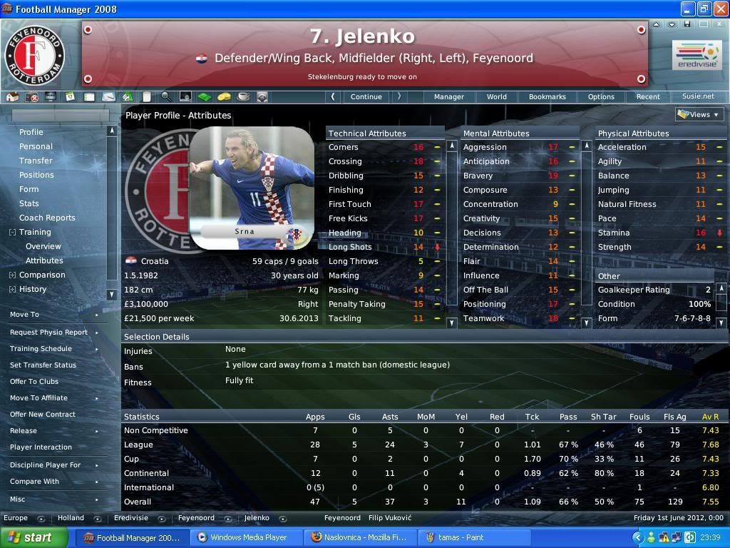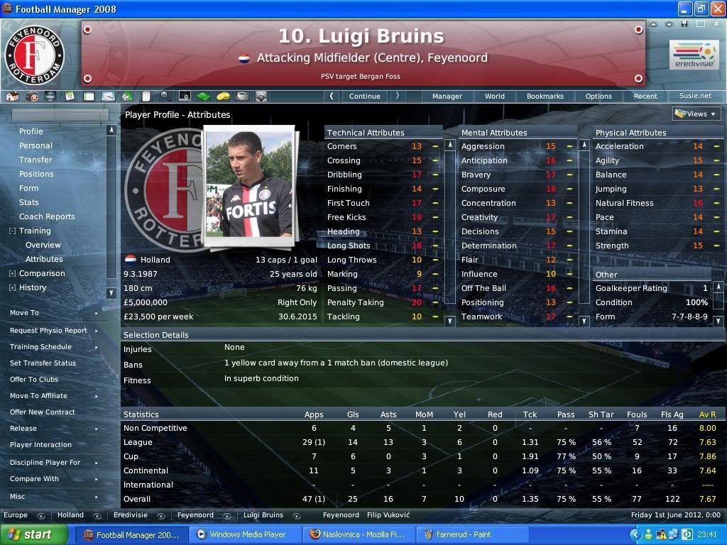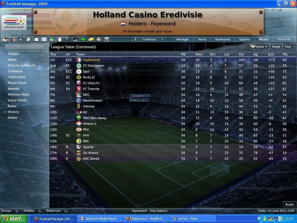 Završio sam još jednu,ukupno 5. sezonu s Feyenoordom.Možda je ova bila čak i zadnja,no vidjet ćemo...Nego krenimo redom.Za početak Eredivisie.